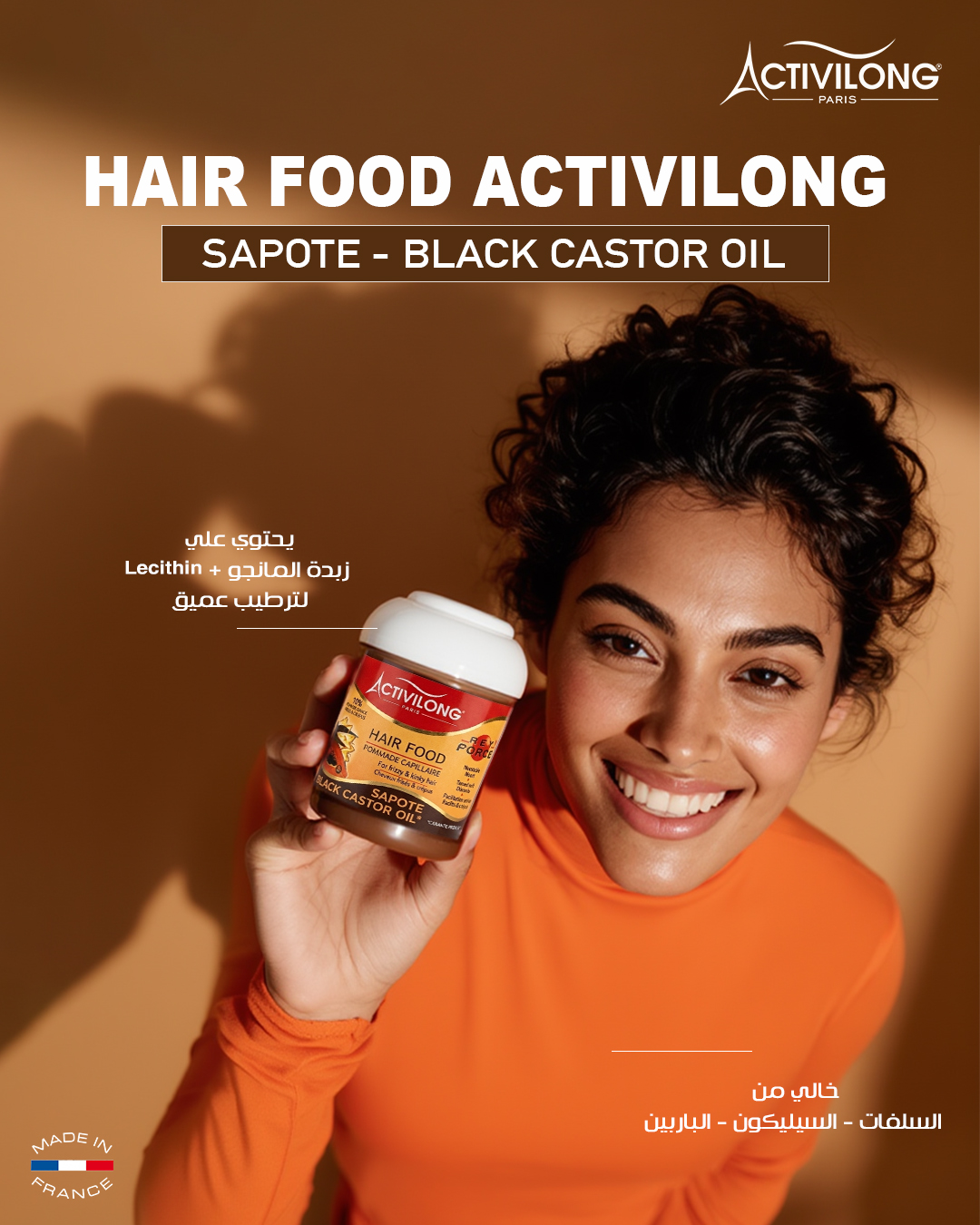 زيت شعر أكتيفورس مصنوع من زيت الخروع الأسود وزيوت السابوتا لتغذية الشعر وحمايته، كما يعمل على الاحتفاظ بالترطيب داخل ألياف الشعر.